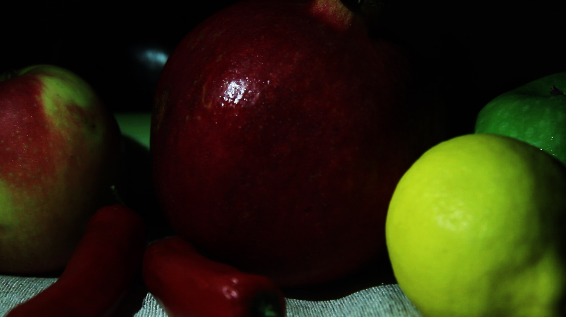 Latest stills from my fruit and vegetable performance, using light to explore texture and colour in particular.