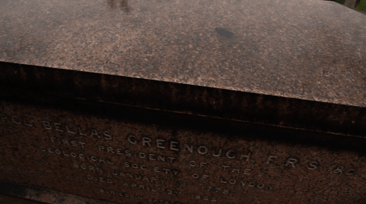 We were looking for famous geologists, engineers and zoologists, marked on the map drawn up by former local resident geologist, Eric Robinson, who led many groups around the cemetery looking at the graves and the stones they were made from