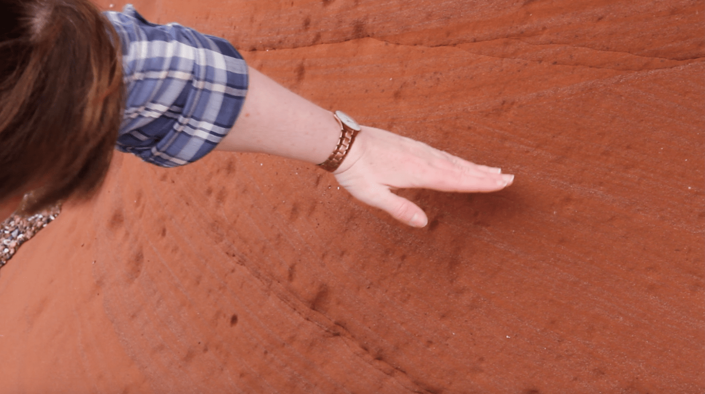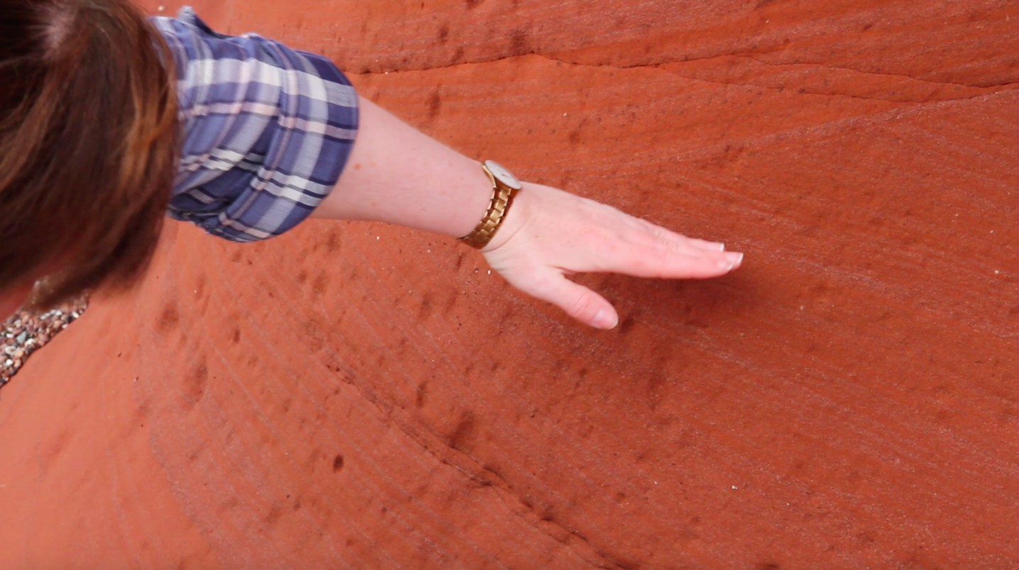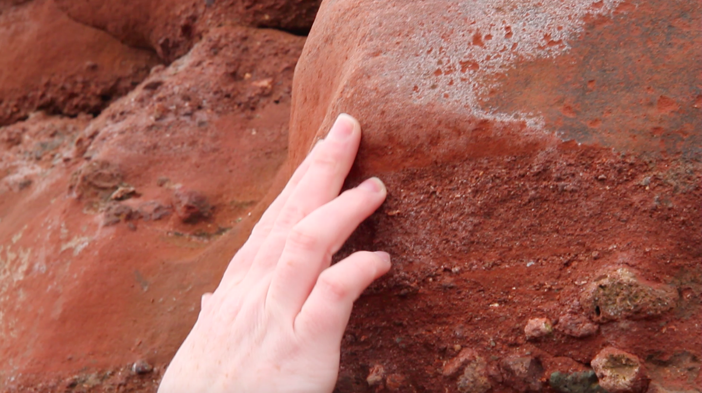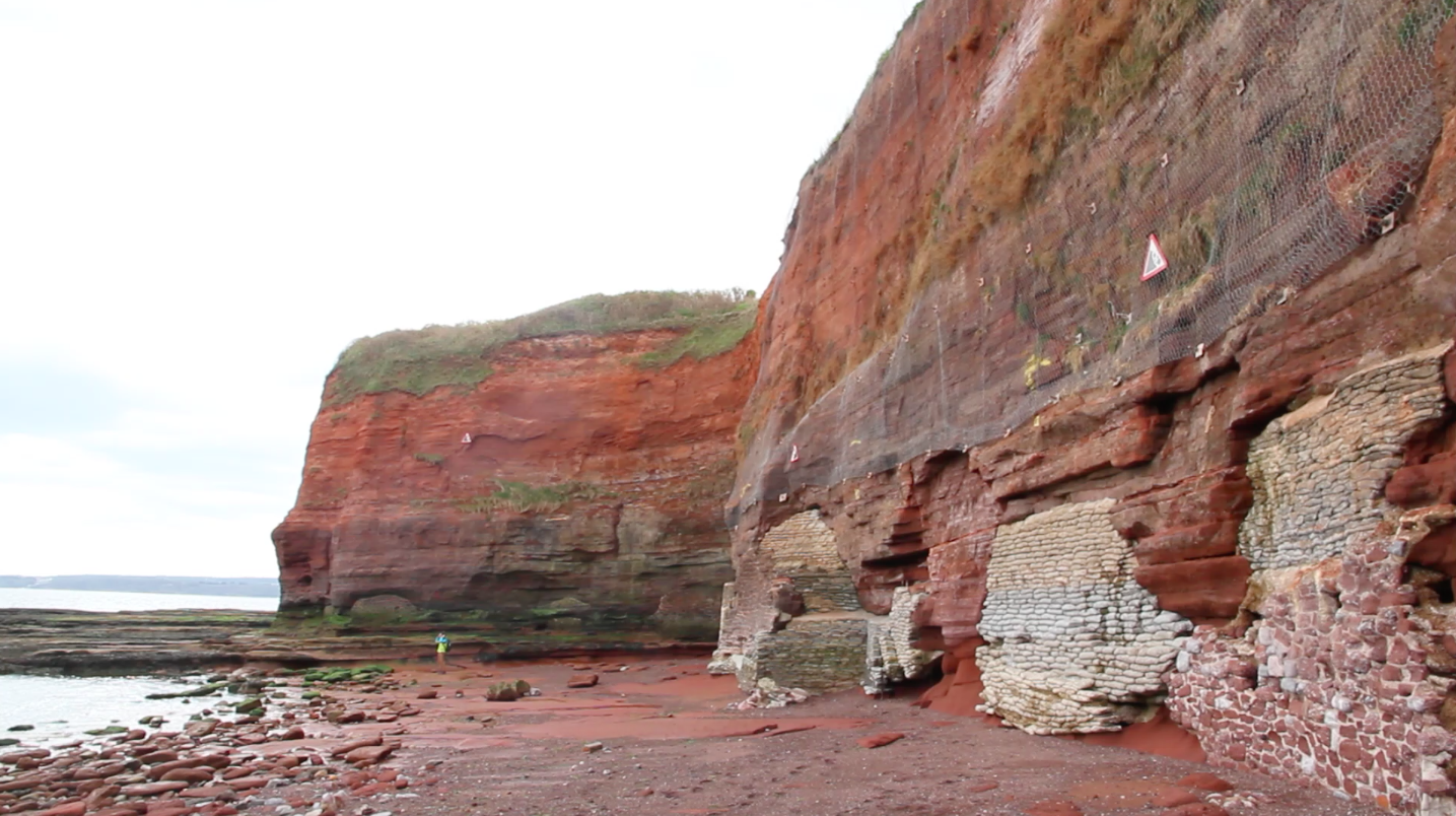 The second location was a beach, with cliffs made of red sandstone from the Permian period. The colour is very indicative of the environment they would have existed in, suggesting these rocks would have been laid down when this was a desert, located near the equator.