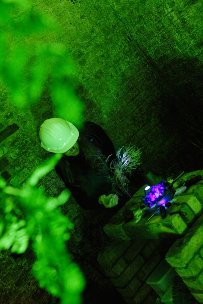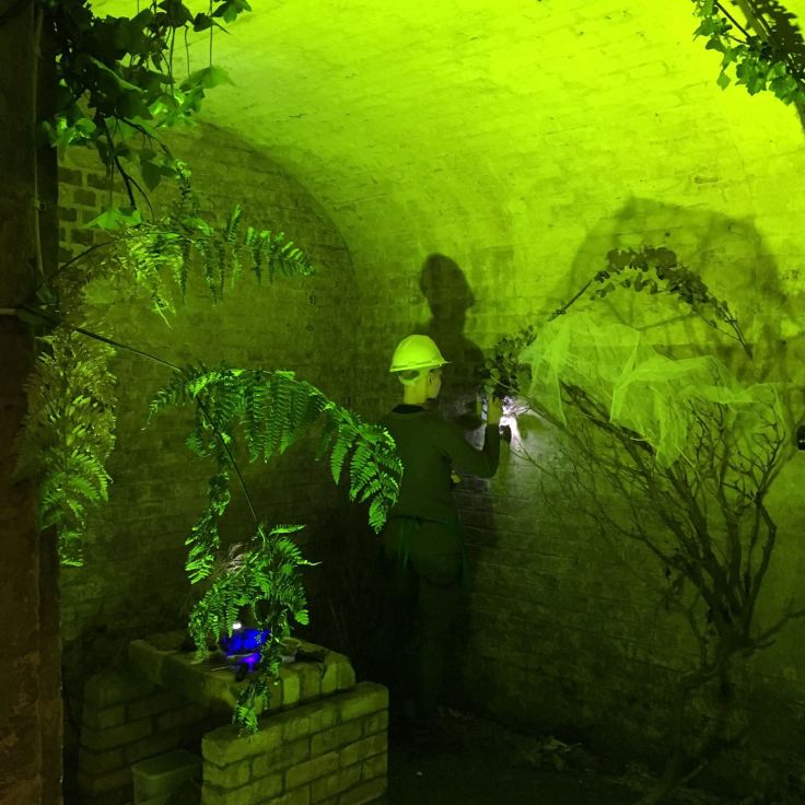 The explorers wore hard hats, and used torches and magnifying glasses to enter this interior world, existing on quite a different scale, to the sound drifting across (created by Josh Ward).