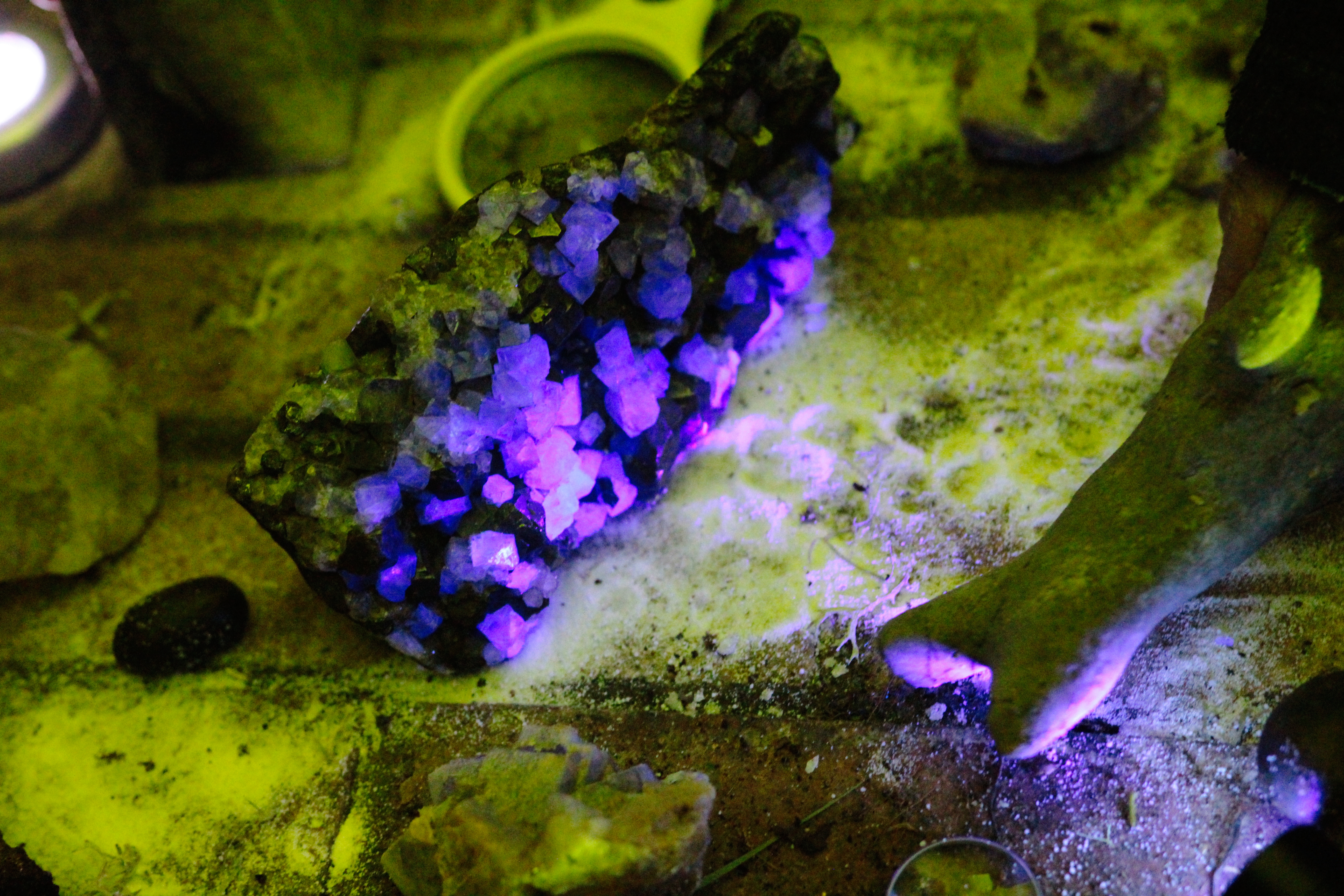 Once the explorers arrived at the core, they found themselves in a subterranean cavern inhabited by moving images, fluorescent minerals, geodes, fossils and strange beasts, where they were free to roam and discover.