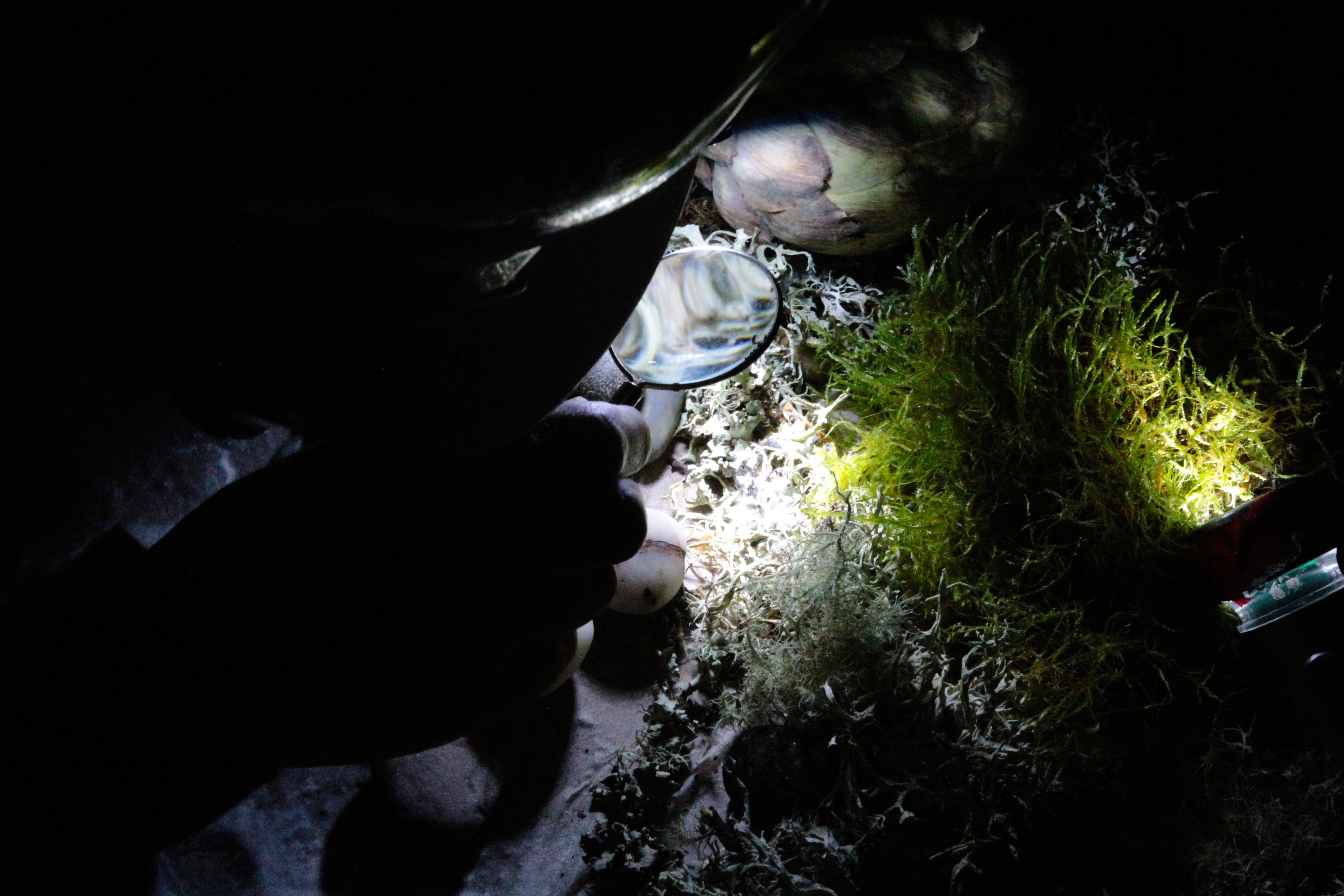 The explorers wore hard hats, and used torches and magnifying glasses to enter this interior world, existing on quite a different scale, to the sound drifting across (created by Josh Ward).