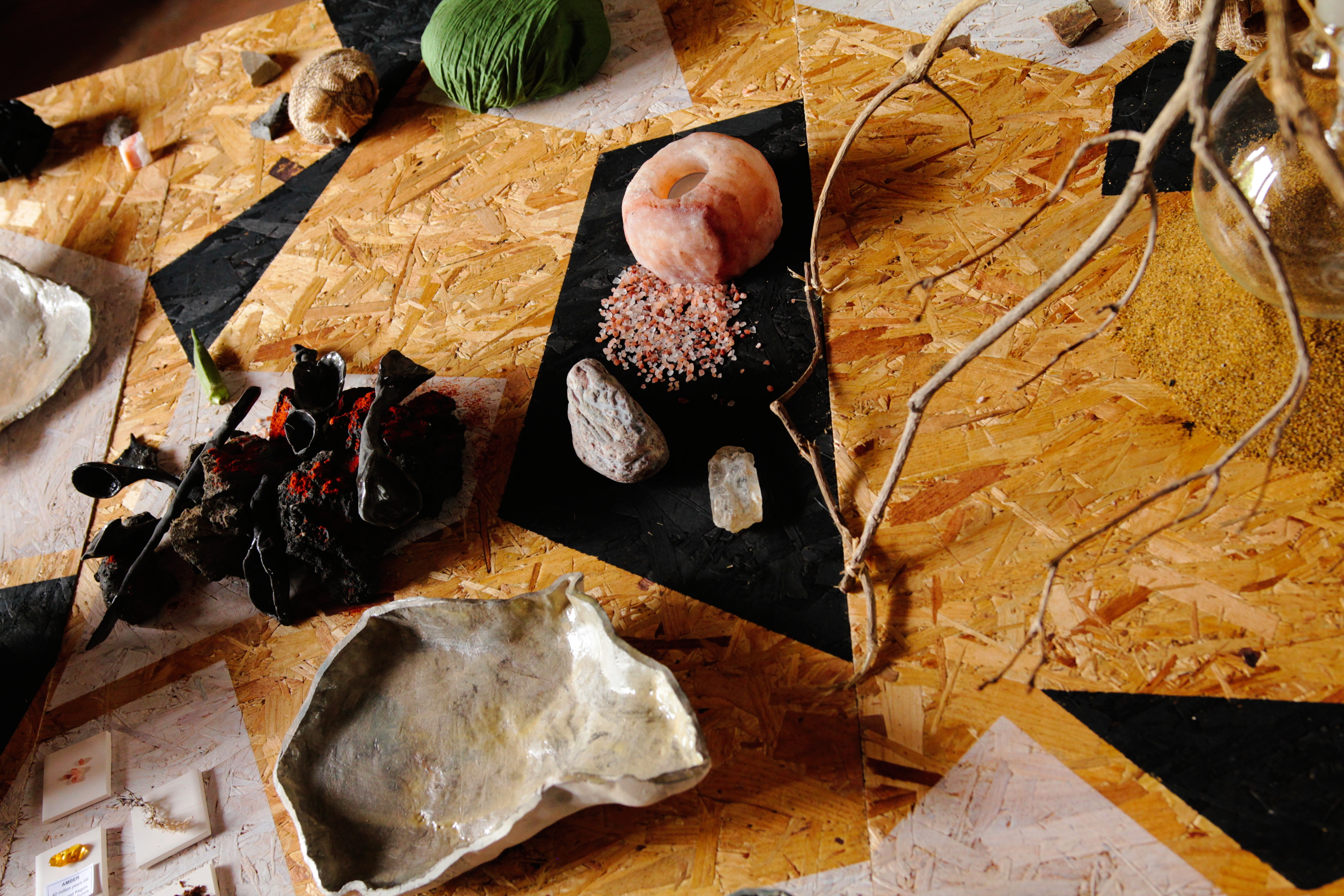 The table layout, resembling crystal shapes, as well as the supporting stands for vessels, were created by Billur Turan.