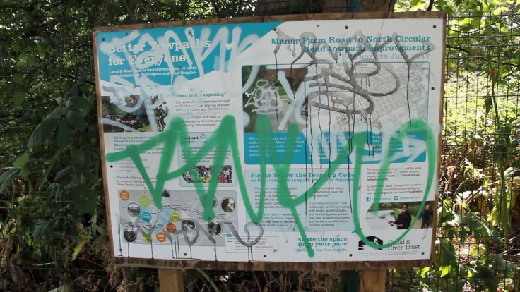 But instead of any answers, I find a greenish cartoon face looking out at me, a little alien emerging from the toxic germination flowing through the green veins and arteries of this part of north west London.