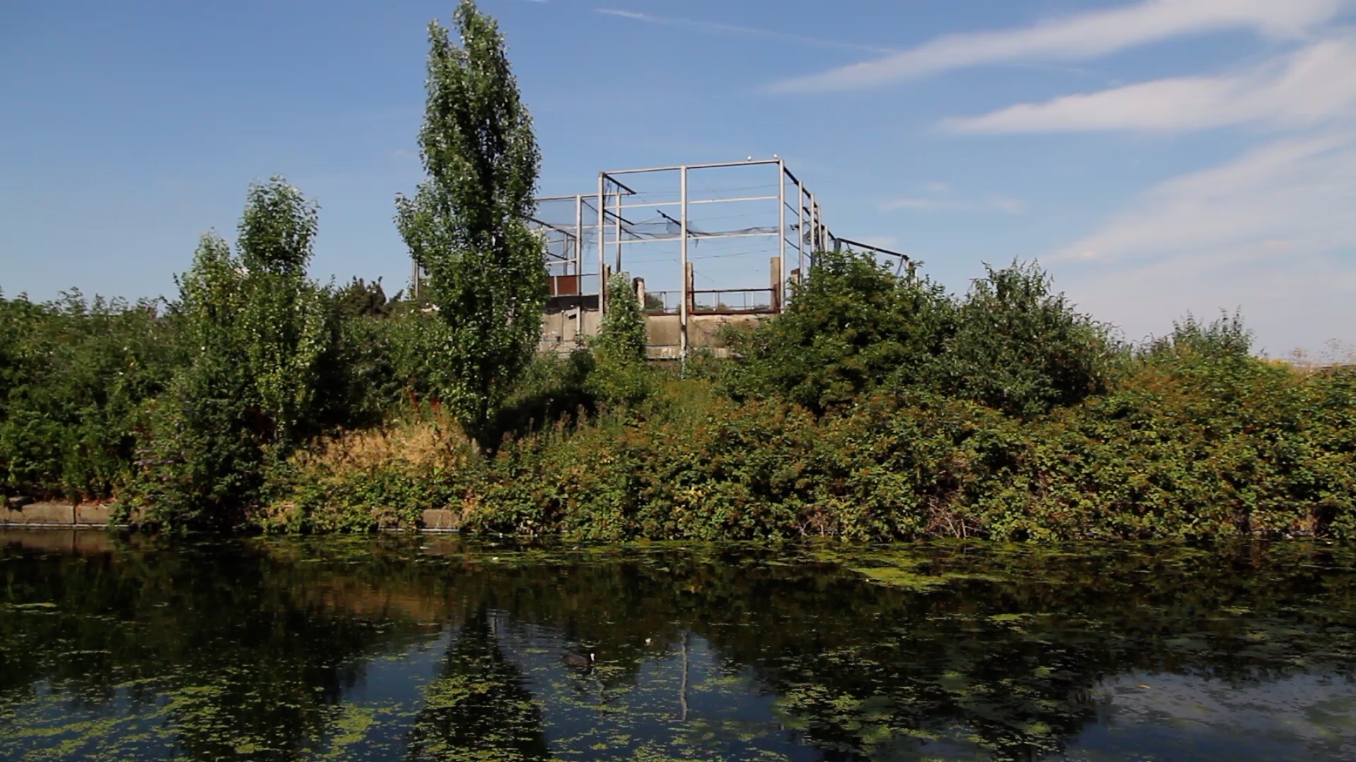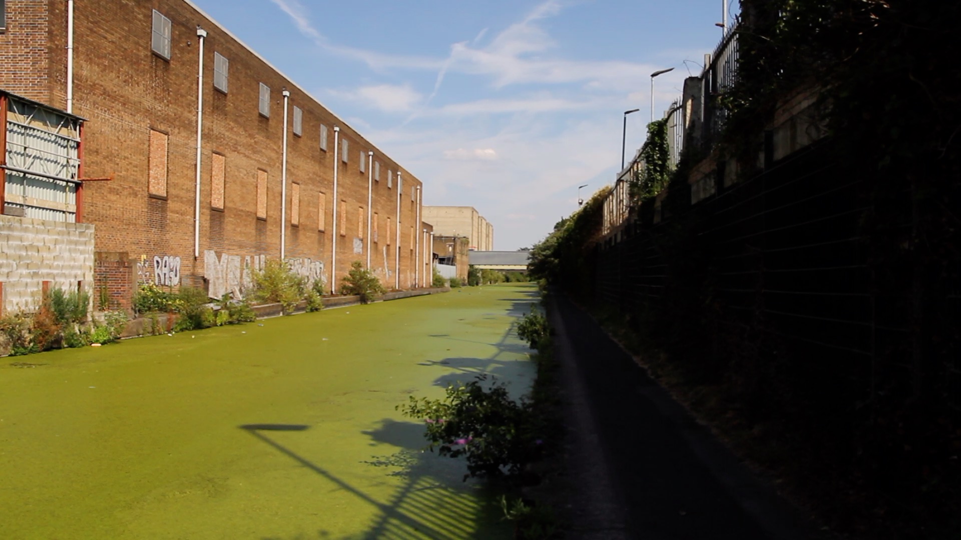 Sweltering heat, strange smells and heavy stenches drifting from nearby factories, spawning thick vegetation, the canal transformed into a toxic green carpet, impenetrable, surely hiding all sorts of disturbing content in its depth. Something much worse than the bloated dead fox, floating like a balloon with a host of flies having a feast.
