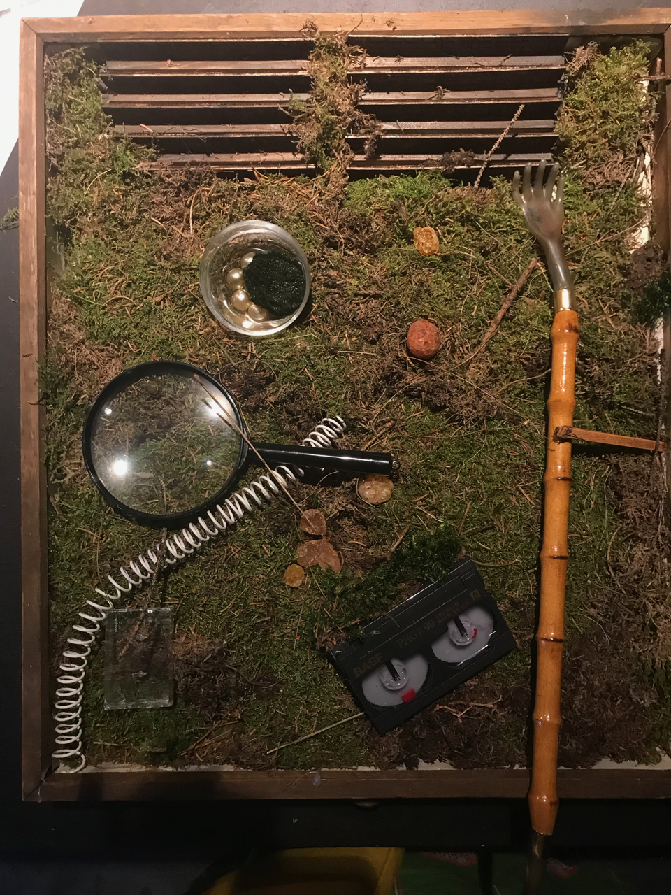 I have decided to create a sub-narrative to the overall concept of Blue Hour. My concept was based on story of Iris by Hermann Hesse, about a boy called Anselm, who lived his childhood in an intimate relationship with nature but later lost his connection through too much reliance on the intellect and spent years trying to return to the more pure way of experiencing. I wanted to conceive of the tangible territory within Blue Hour as miniature landscapes, inviting people to rediscover their childhood playfulness, instigated by proximity senses, such as touch and smell. Beyond Anselm, I also considered Gaston Bachelard’s Poetics of Space, in particular his chapter on miniature, as well as the poetry of drawers, corners and shells.