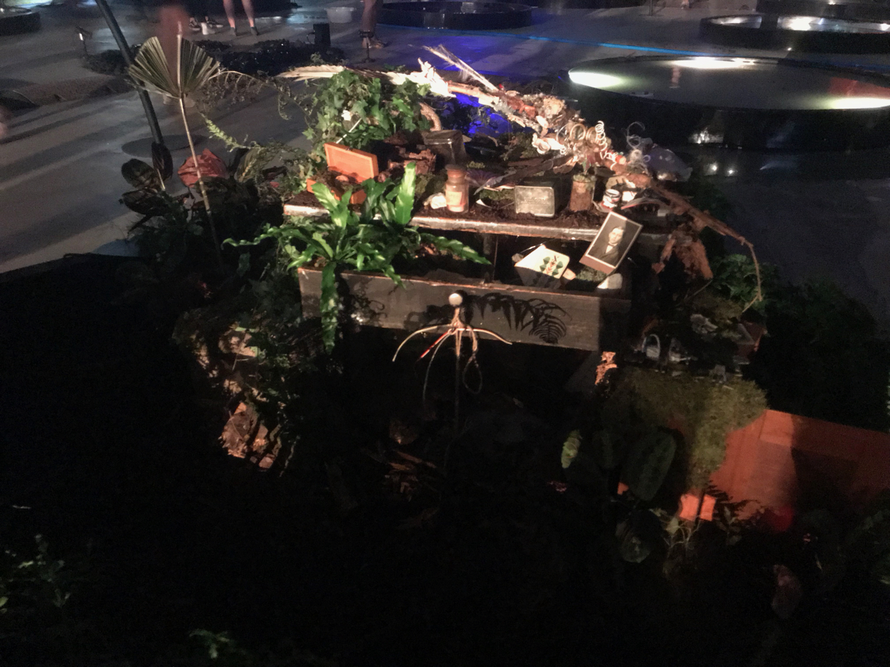 Materials: ash, soil, pebbles, rotting flowers/plants, charcoal,