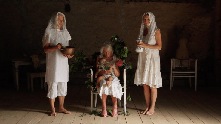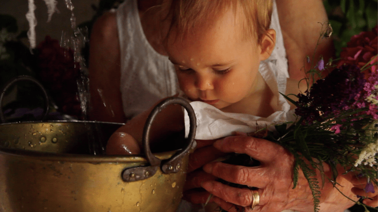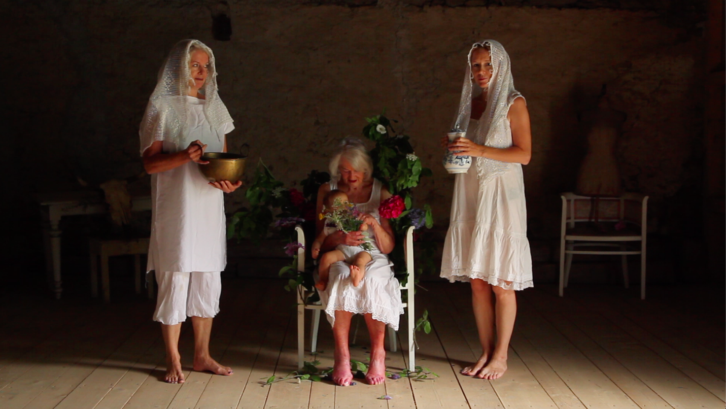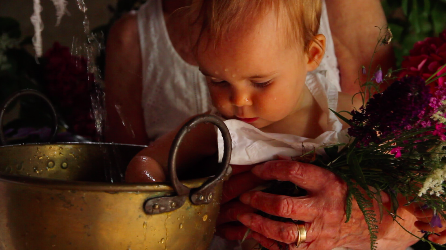 I felt that it made sense to continue the thread of the previous films in particular last year’s Water Rituals which is where we left off last summer. The aim this year was the performance of a simple ritual involving a “baptism” with water. I also wanted to bring in a sequences which would mirror From You to Me which I filmed here in 2015. This time rather than a symbolic object (cake) we were to carry a real embodiment of the re/generation of the female line the new baby girl.
