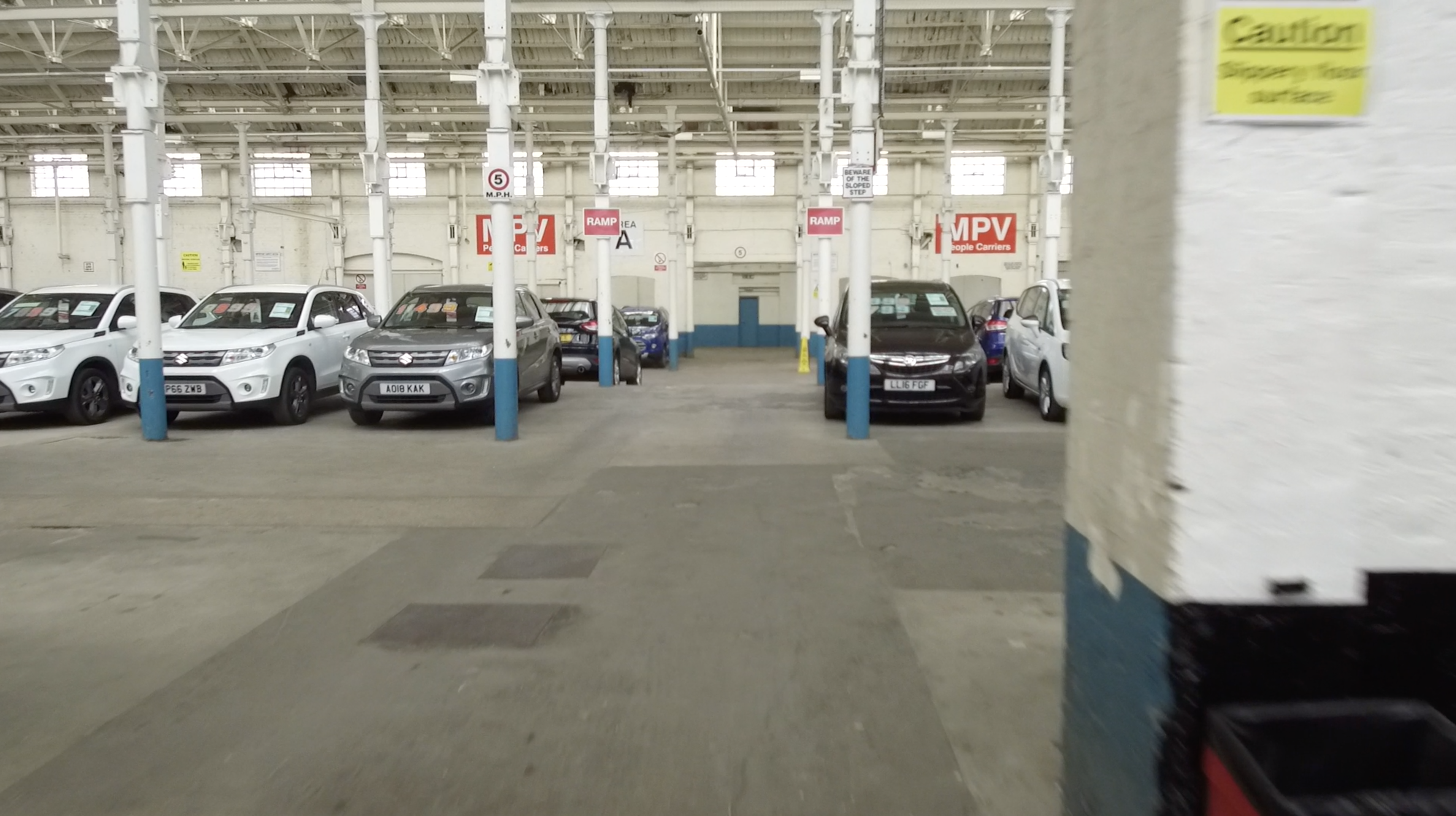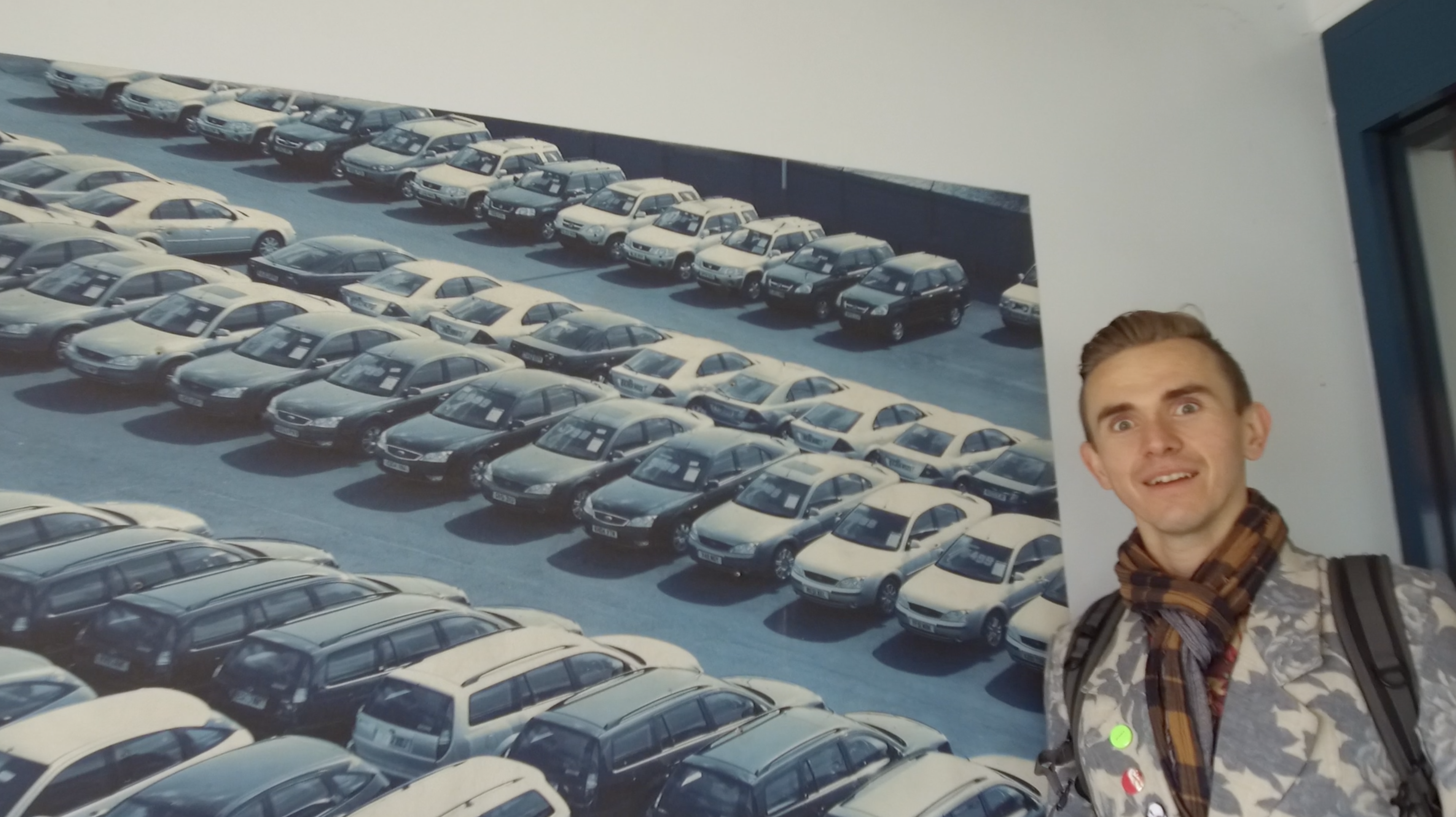 Sheltered within its expansive walls, are rows and rows of quiet four wheeled machines, eagerly awaiting their new owner. But we have little interest in them. Instead, we follow the architecture and soon my attention is caught by an amplified sound of running water, passing through one of the pipes. This could be a sound installation!
