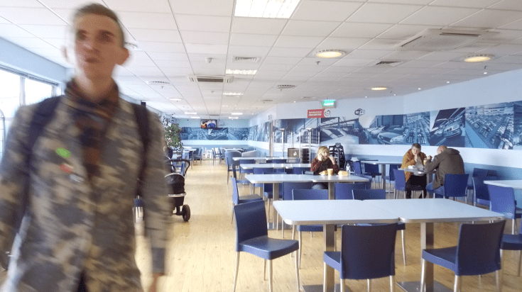 I follow him eagerly up the glowing staircase, a ship about to be launched into space. Soon enough, having entered what could be a new Punchdrunk set, I expect alternative realities behind every door. The universe here is plastic, blue, resembling the anonymous non-places of ferries, airports and train stations. Where are we sailing off to?