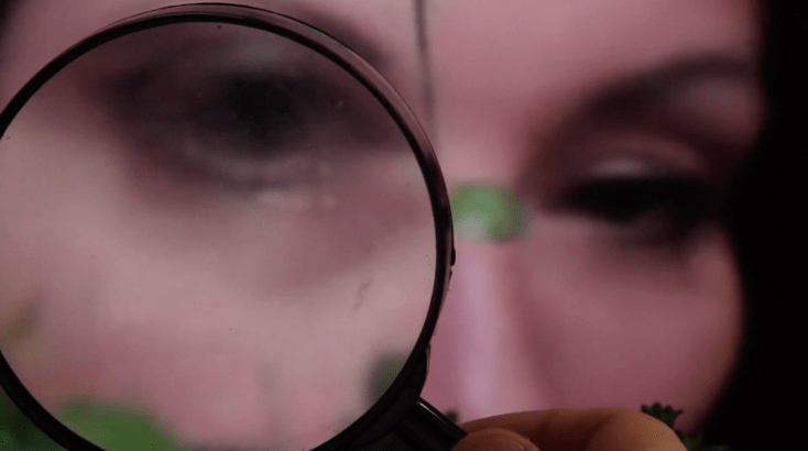 The film also invites us to consider the power of imagination, and the importance of materiality. Science fiction writer A.C. Clarke’s third law states that “any sufficiently advanced technology is indistinguishable from magic”. Self-Isolation Dinner makes us wonder what kind of technology would allow the two protagonists to share through the screen vegetables, smells, and touch, as we witness them doing in their intimate rendez-vous. But we soon realize that the magic that’s required is of a different order altogether: not the product of Silicon Valley whiz kids, but rather the result of us paying participatory attention to the everyday that surrounds us. This has always been what the arts do best – giving us fresh eyes with which to look at and understand the world around us anew. In Tereza’s film, a cascade of couscous is effortlessly transmuted into a cluster of galaxies; a forest of delicate mushrooms into an enchanted wood; the turgid surface of a kale leaf becomes a moment of sensual delight; lemon and orange peelings, the tangy reminder of all that is invisible to the eye. Like dark matter in the universe, these sensations are everywhere around us, but unlike dark matter they are within our reach if we only focus our imagination, following Mark Twain’s invitation. The restrained, carefully calibrated beauty of this film is precisely that: to open up a new universe in the multitude of our sensual encounter with the everyday.
