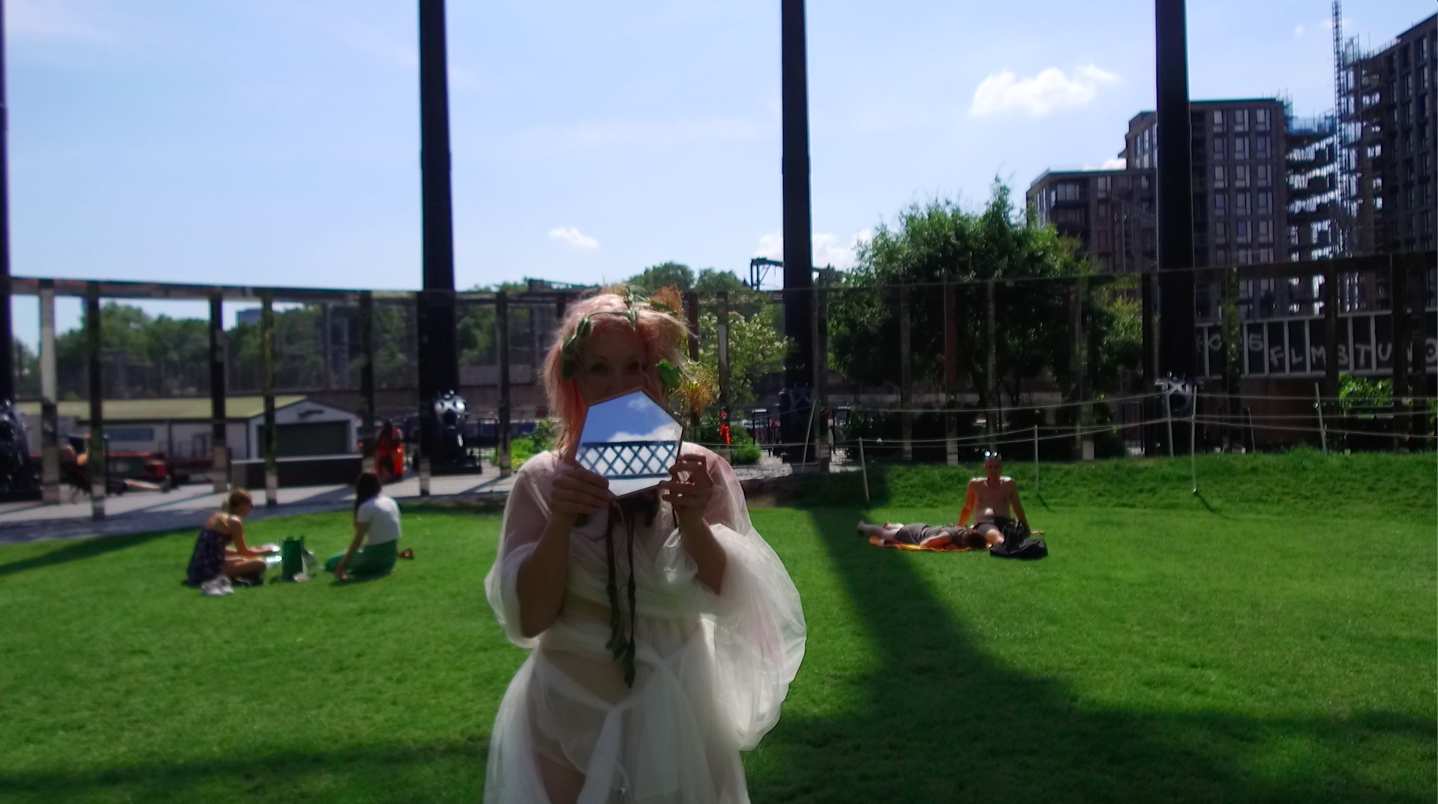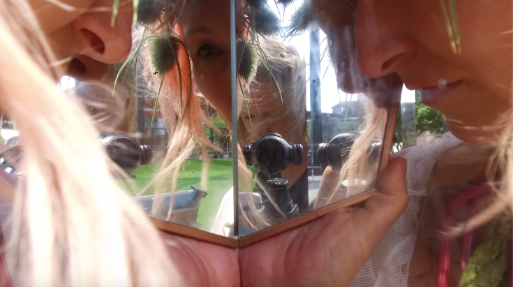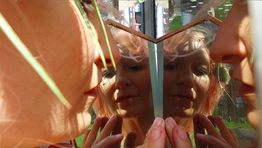 For the following stage of her journey we join Ophelia on the other side of the screen, trapped inside a world, where touching is mediated by the shiny surface of mirrors.