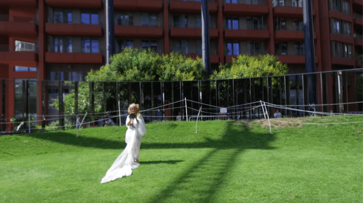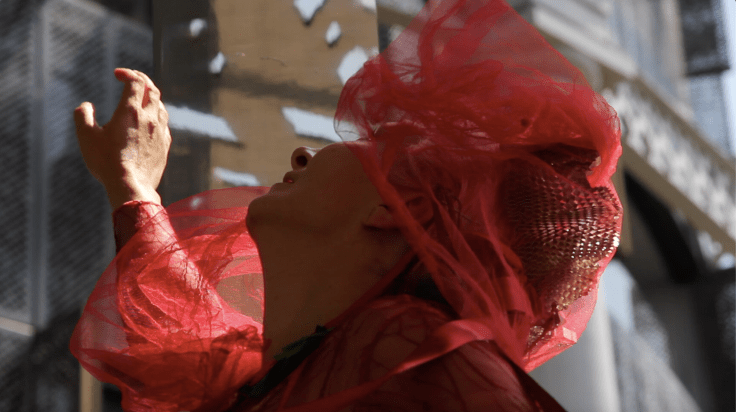 But before that, briefly, she appeared inside Candid arts space, black and veiled, sharing fruits and flowers with her guests, a kind of shadow or “negative” version of herself.