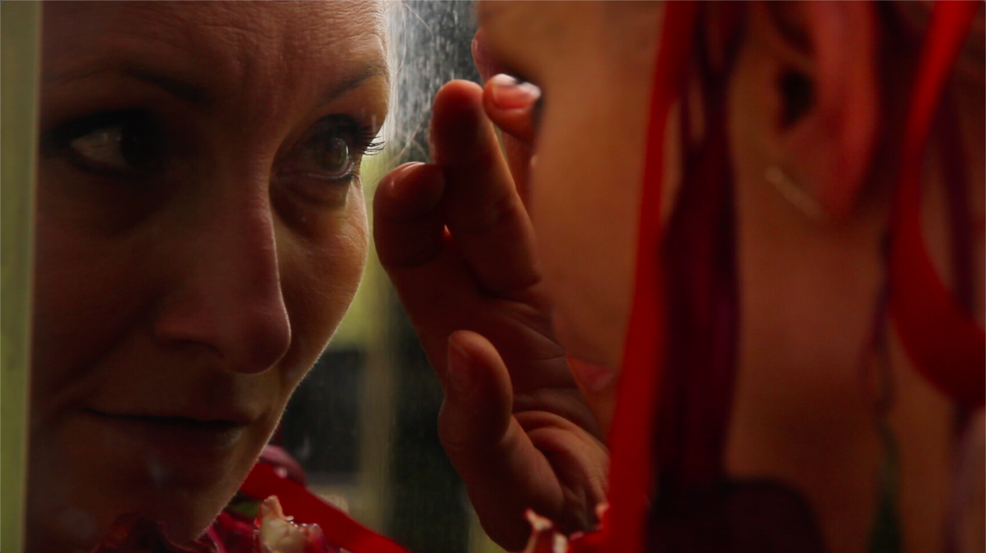 At some point Ophelia actually acknowledges the presence of the camera, by directly offering something? Sniff of basil. Pomegranate? Maybe this is the moment of escape, into another dimension? A kind of turning onto oneself?