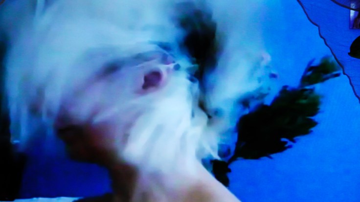 Animation is introduced with the help of a blow dryer, creating a momentary sense of the woman inside the screen being an astronaut, floating in zero gravity, weightless.