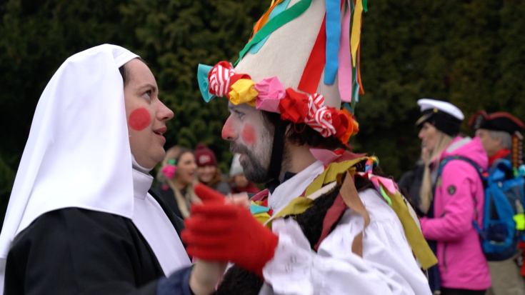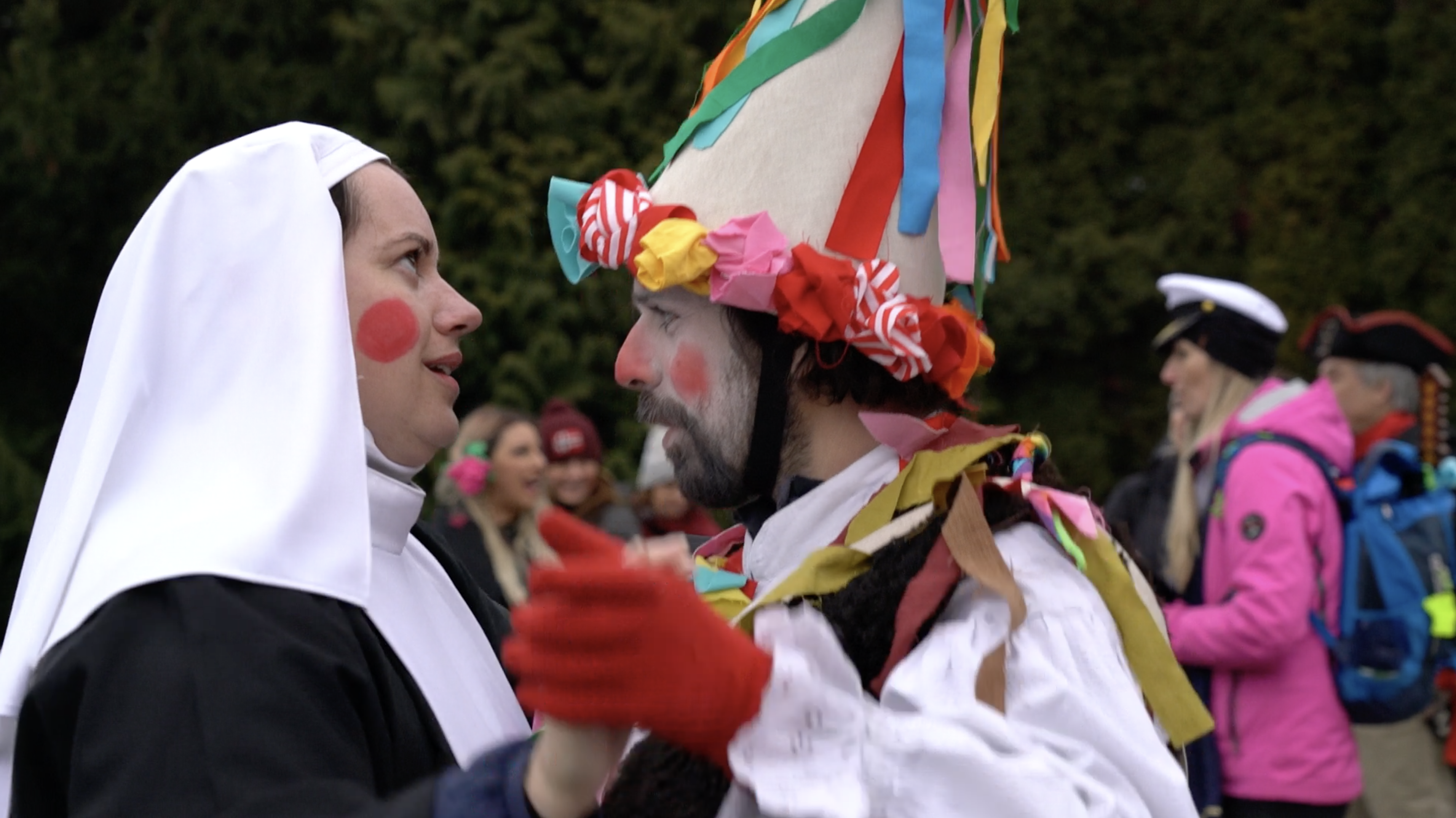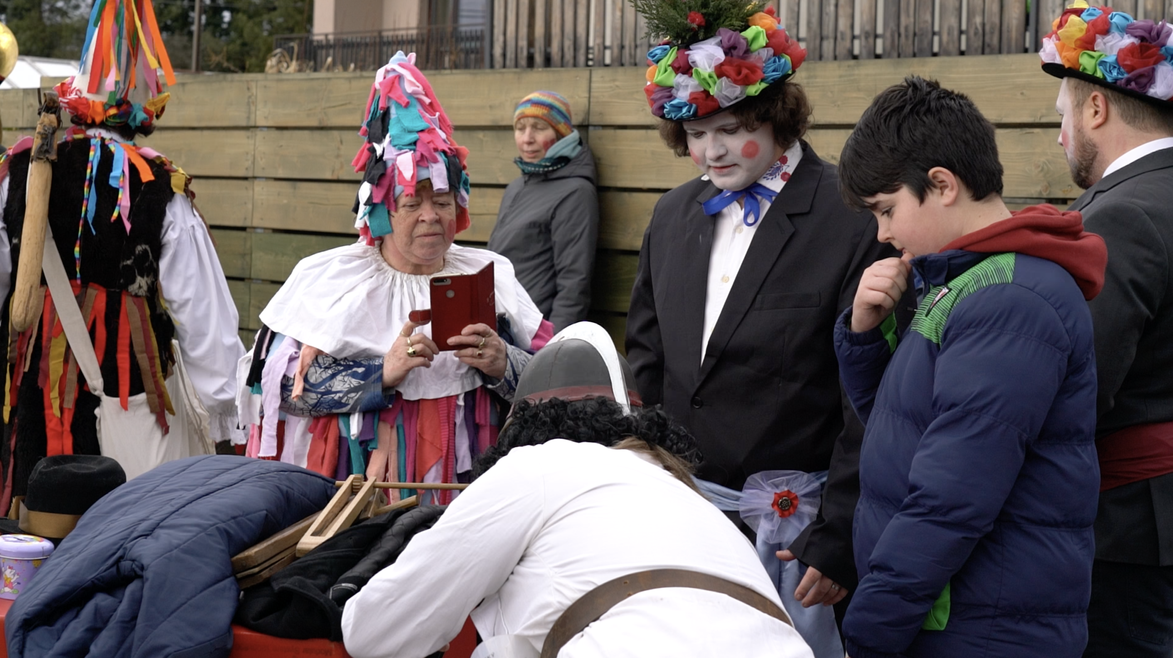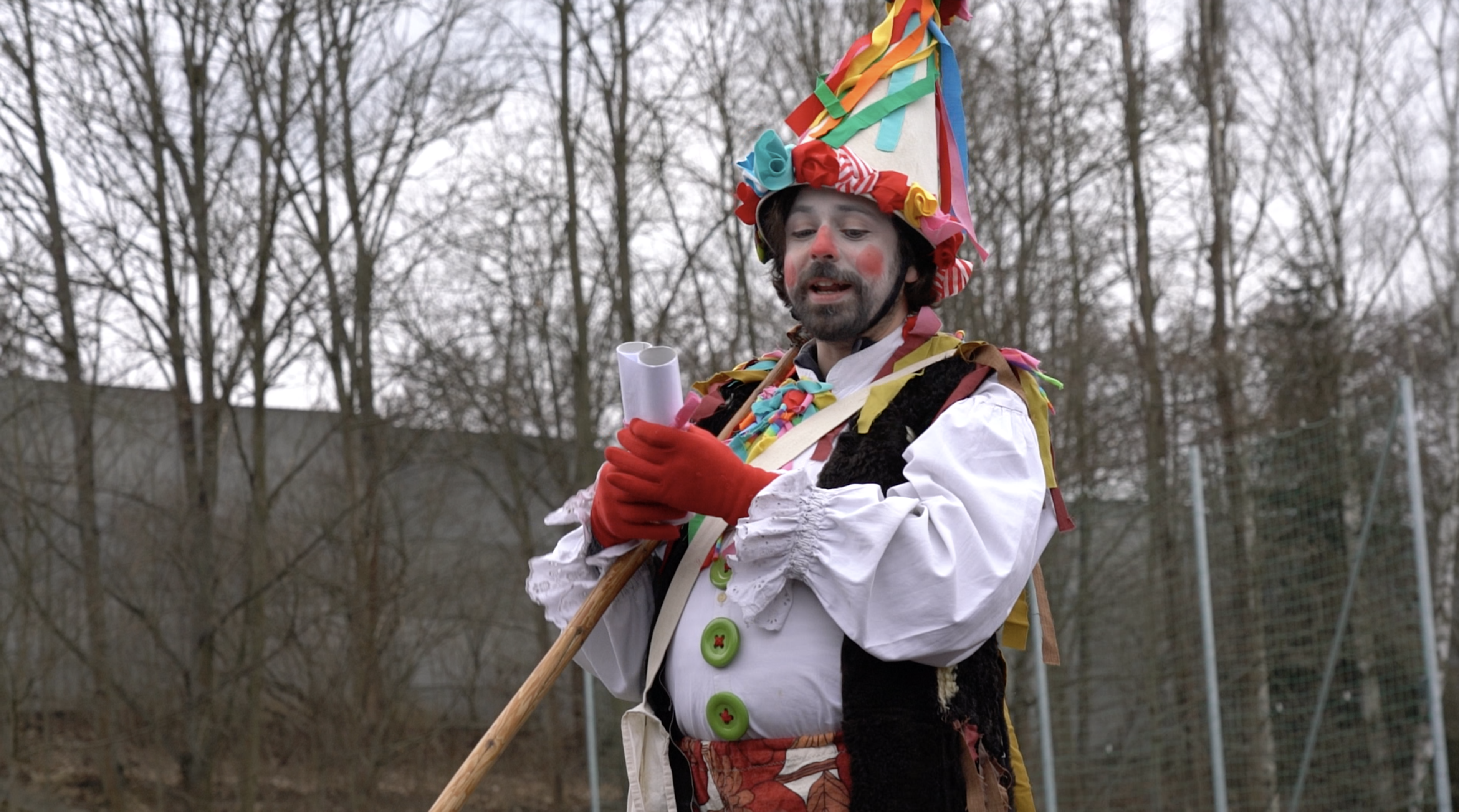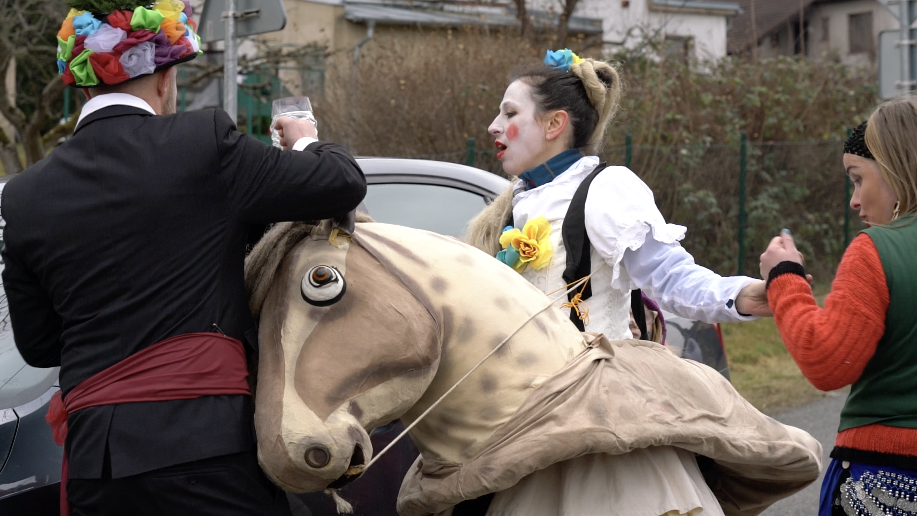 Images by Tereza Stehlíková, are stills from a short film in making, capturing Masopust in Mirošovice u Prahy, on 5th March 2022, organised by Obec Baráčníků Mirošovice