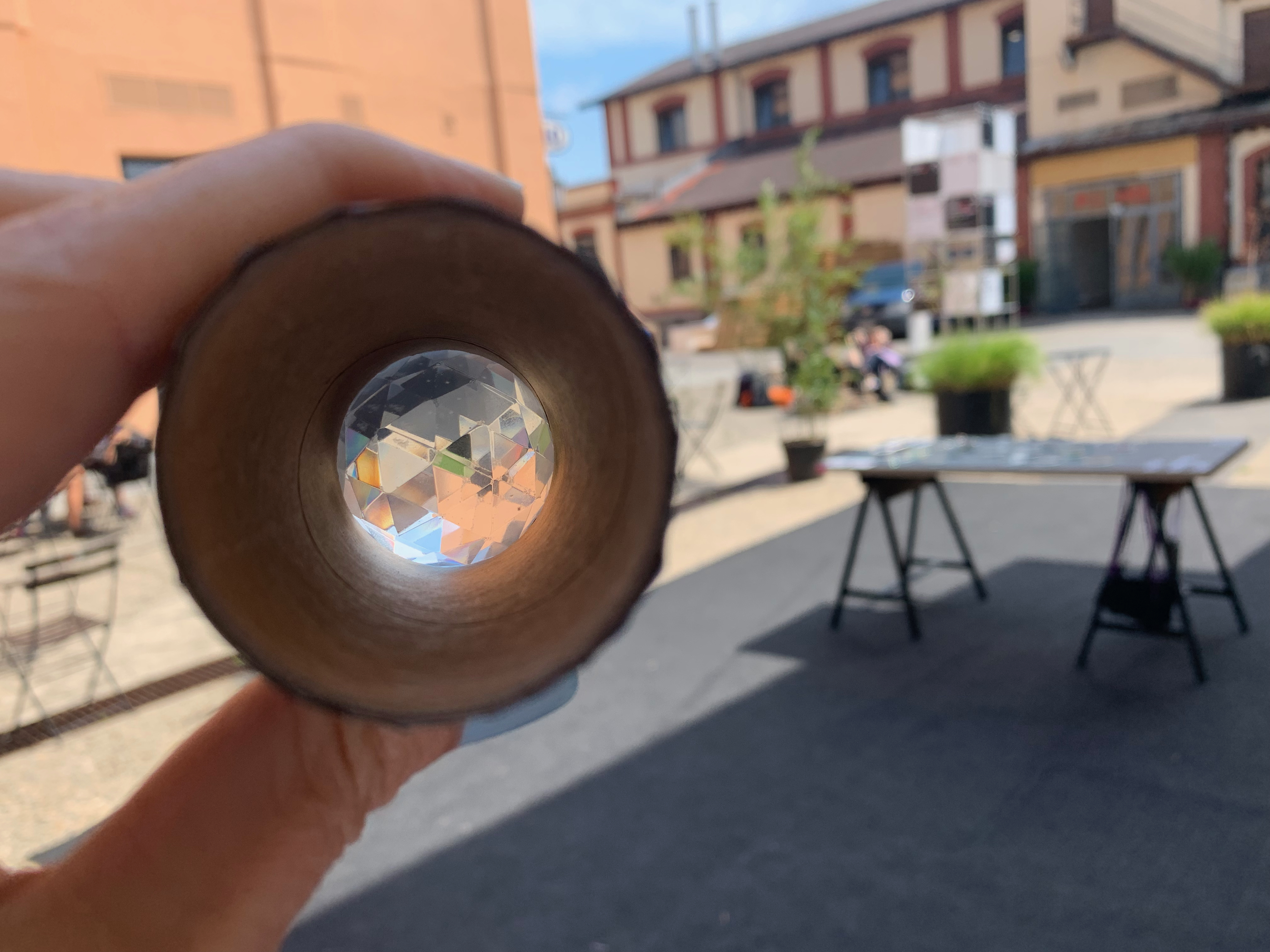 The resulting participatory performance was framed as a “laboratory”, which invited visitors to become part of an experiment of reframing perception of everyday reality and situating oneself within it, by the simplest analogue means, a kind of return to childlike playfulness and immediacy, yet informed by other layers of meaning.