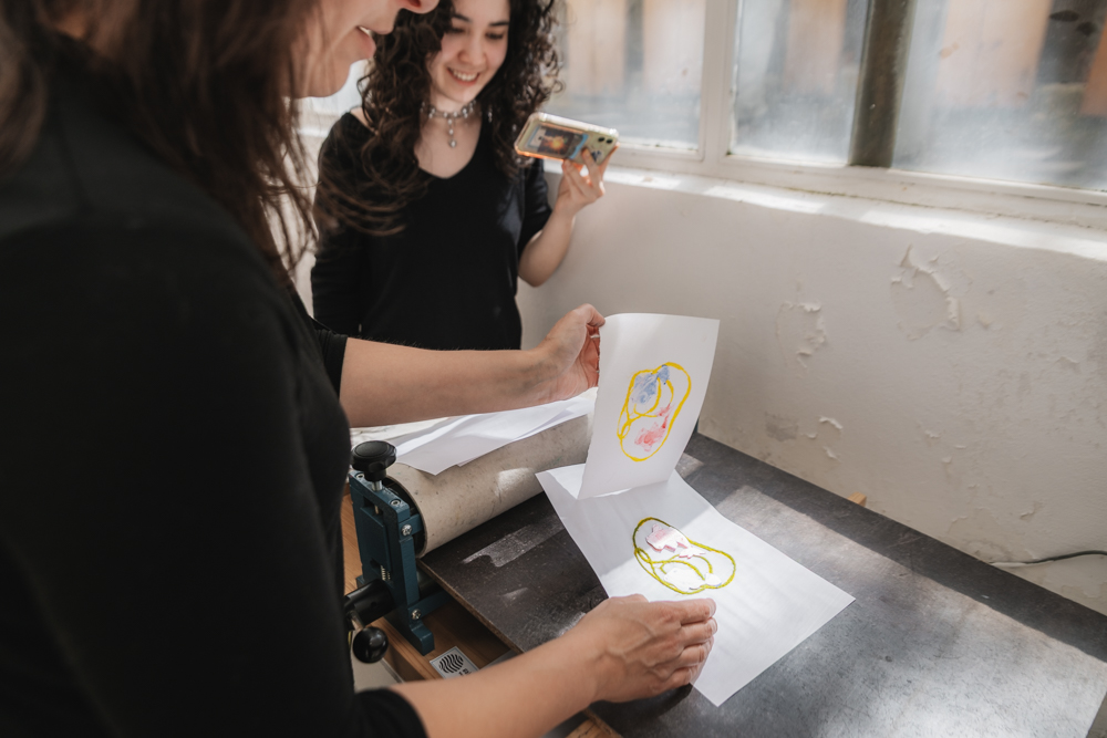 In this workshop participants explored their sense of belonging through experimental printmaking. Our focus was on the theme of individual inner landscapes, places of belonging reflected in the outer world (landscapes) and vice versa. Experimental printmaking mostly included/combined monotype and intaglio using discarded objects or vegetation such as tetrapak, foil, hide, plastic, sinew, ropes, plants or metal.