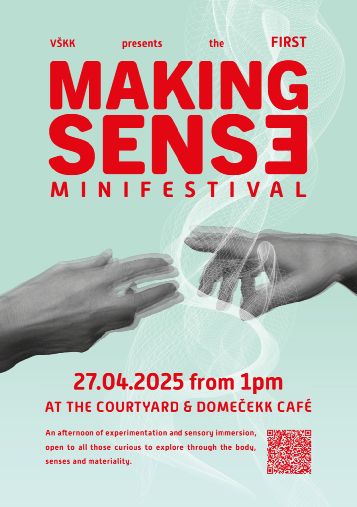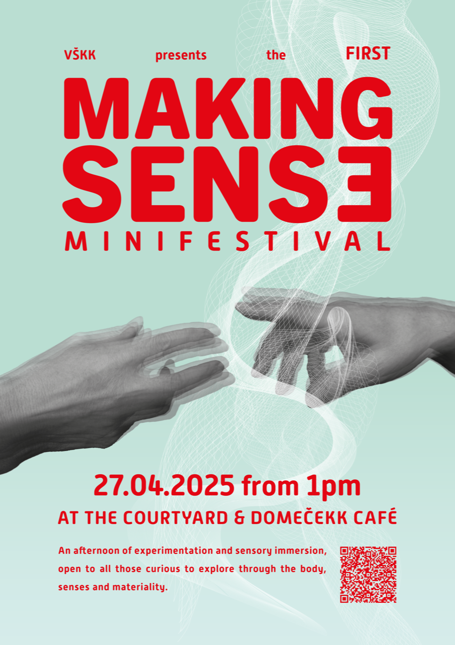 The MAKING SENSE Minifestival welcomed guests to an immersive afternoon and evening of creative exploration through the senses. Hosted by the Making Sense Lab at VŠKK, this one-day event invited artists, students, researchers, and the curious public to engage in a hands-on investigation of how we know—through our bodies, materials, and environments.