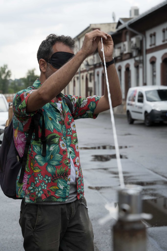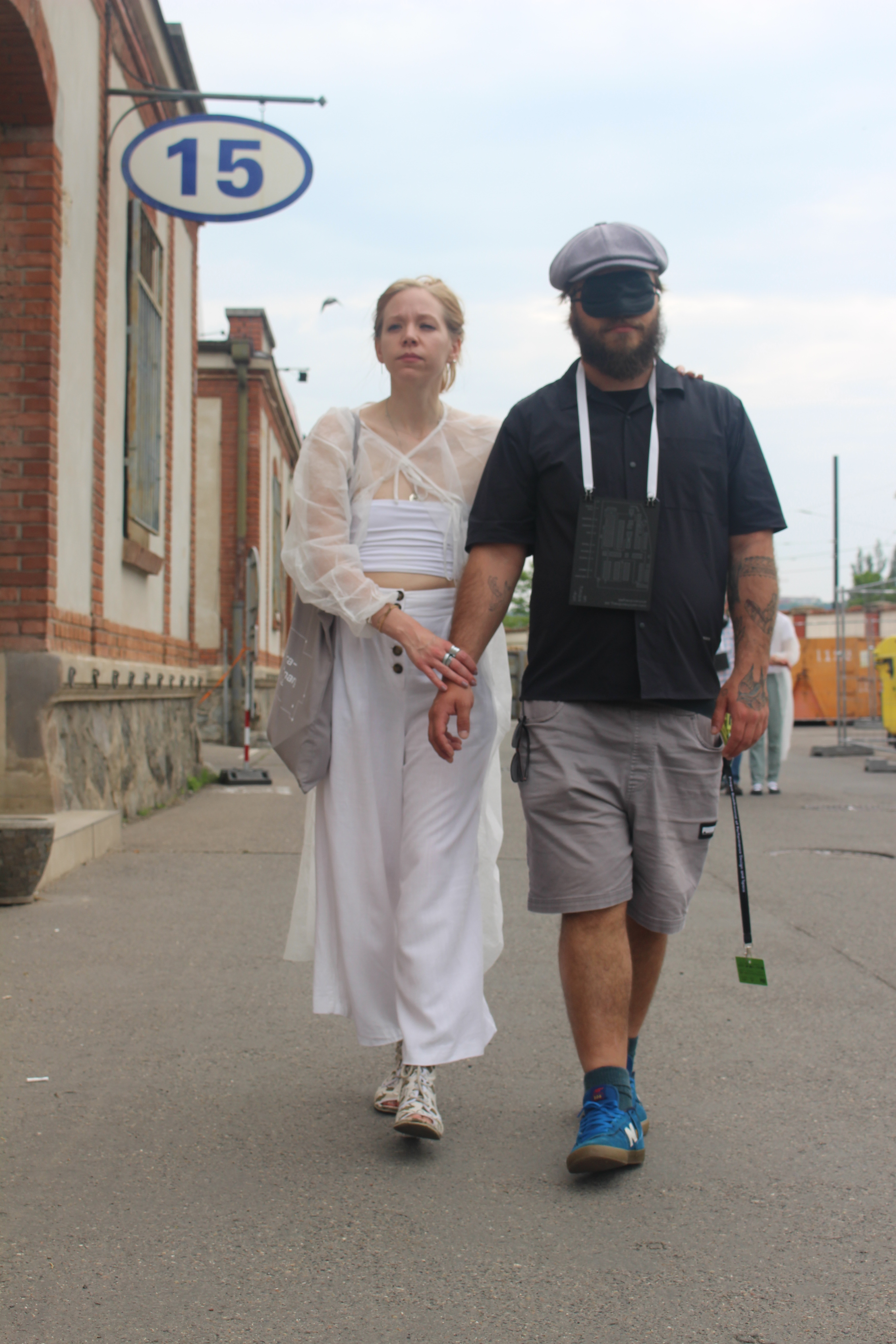 This performance was conceived as a playful experimental laboratory to help participants question some of these habitual ways by framing your experience of a particular place. Through spoken and other sensory prompts, some of the hidden narratives of Holešovická Tržnice and its history were revealed, while also opening up space for imagination.